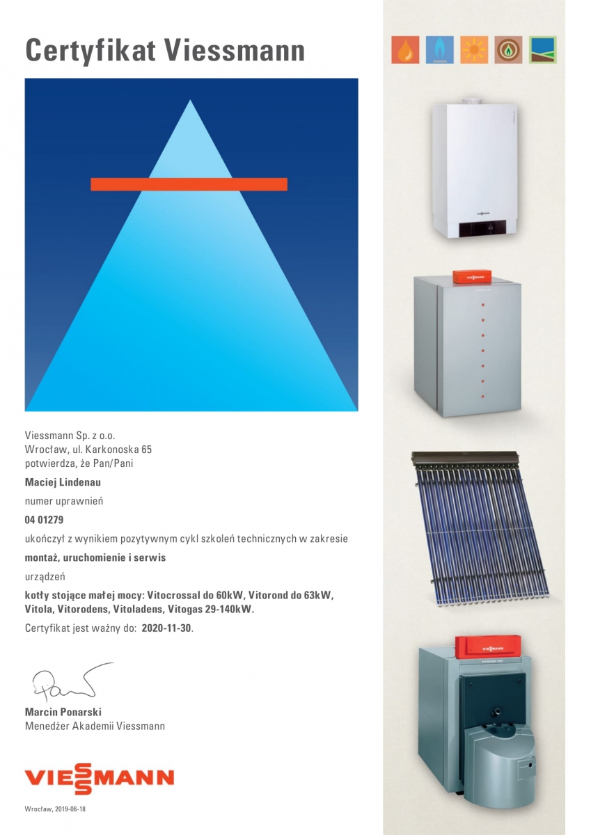 Mamy przyjemność poinformować, że firma Milatechnik ukończyła z wynikiem pozytywnym cykl szkoleń w zakresie: montaż, uruchomienie i serwis kotłów stojących małej mocy. Podpisała również umowę serwisową z firmą Viessmann.